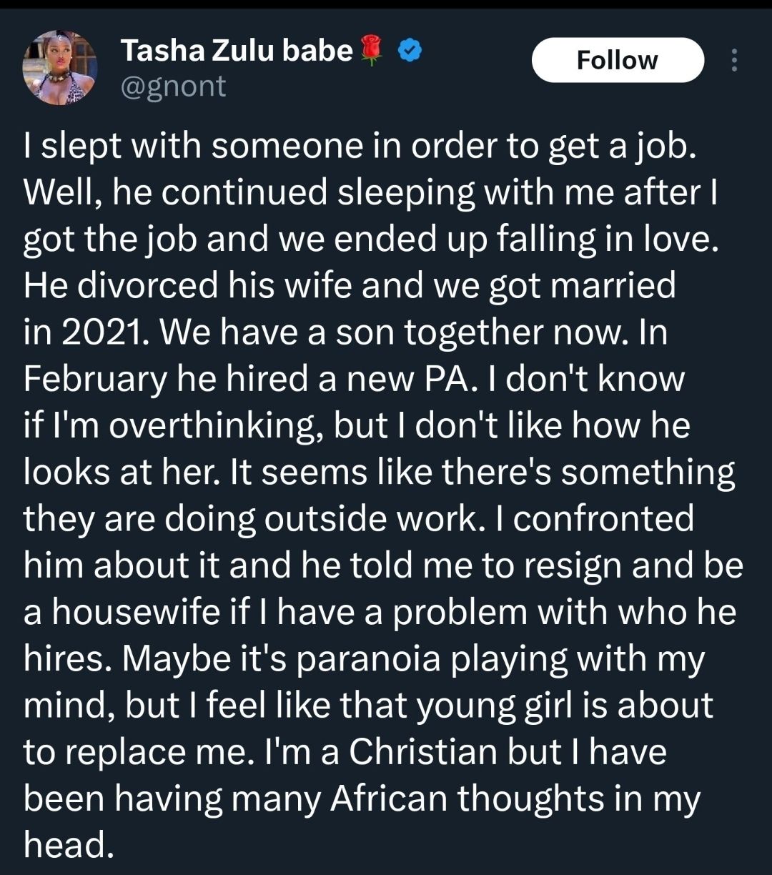 You’re probably wrecking another woman's home or relationship somewhere.